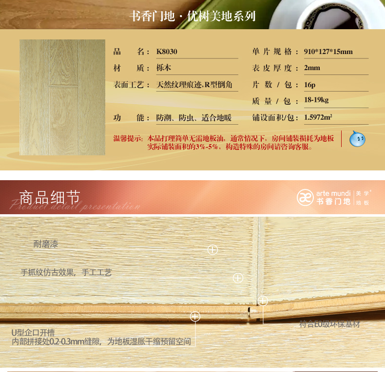 书香门地多层实木复合木地板 环保橡木 防水 适合地暖