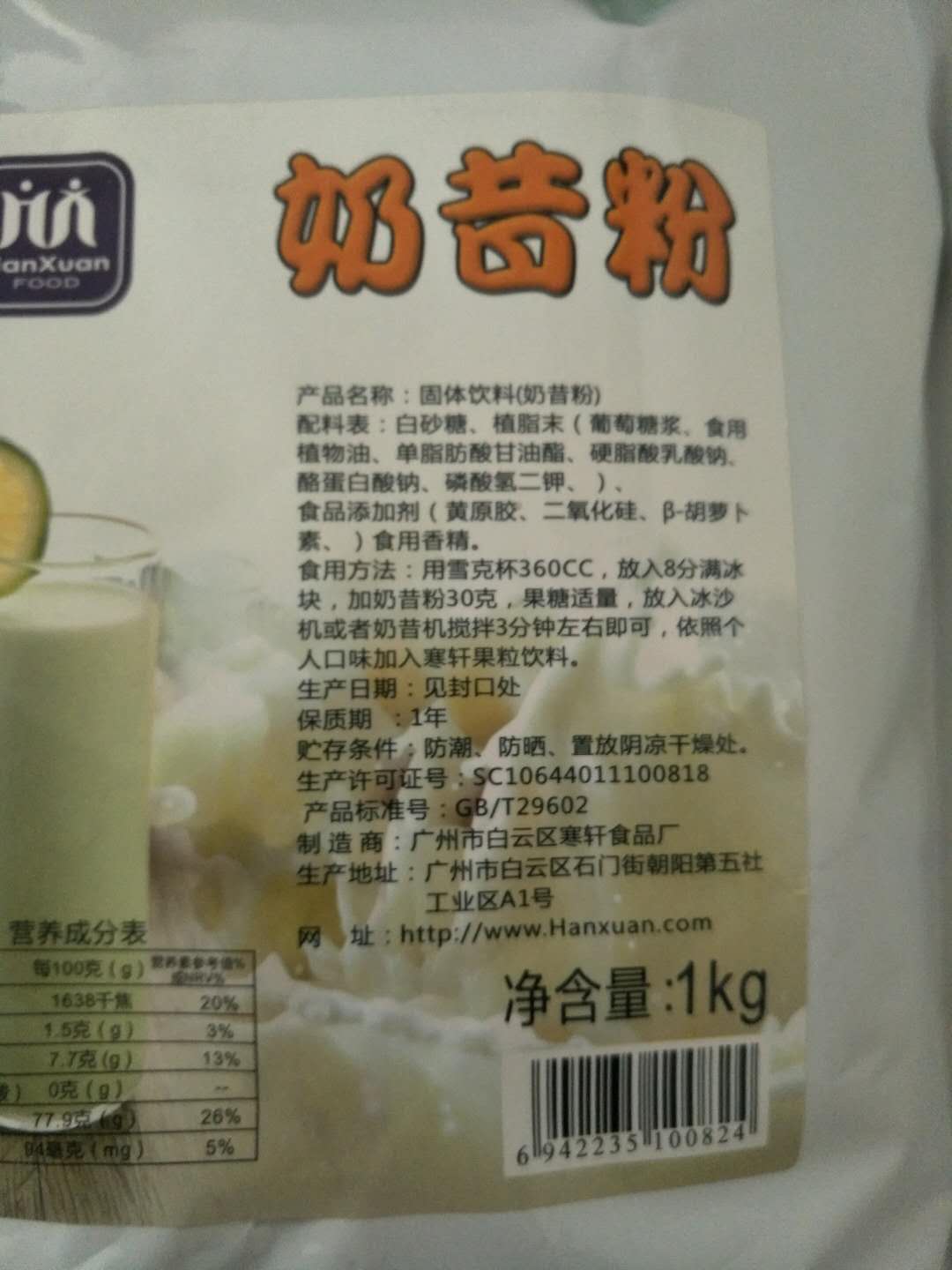 寒轩超级奶昔粉1kg 雪泡冰沙奶昔奶茶饮品店原料